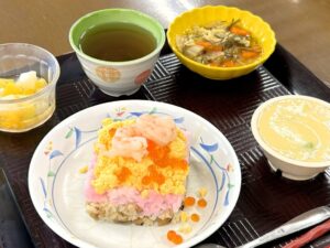 ふれあいの丘でも、この日は彩り豊かな「ちらし寿司」をご用意しました。