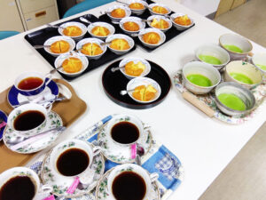 また、今回もデイサービスエリアにもおいしいお飲み物を提供してくださいました。 デイサービスのご利用者様からは、普段飲み慣れない本格的な抹茶が特に人気だそうです!