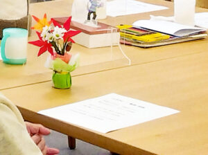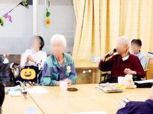 人前で歌うのは少し恥ずかしいなというシャイなご利用者様にも楽しんでいただけるように、歌いやすい童謡や唱歌の歌詞カードをご用意しました。皆で歌う「ふるさと」、歌の力がより増して伝わってきました!