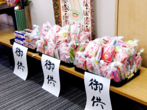行事の後には御供えのお菓子を振舞わせていただきました。