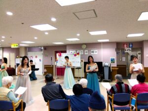 先日、デイサービスフロアにて、女声アンサンブル「ピュアエンジェル」の皆様による声楽コンサートが開催されました。