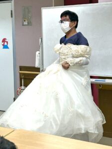 ボランティアコンサート後、なぜかドレスを着て踊り始めた職員でした。