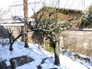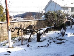 先日の日曜日は全国で記録的な大寒波となり、ここ河内長野でも朝から雪が降り続いていました。翌朝になっても側道や畑には真っ白な雪が残り、美しい銀世界を見せてくれています。