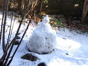 お庭の隅の方に、かわいらしい雪だるまを発見しました!