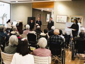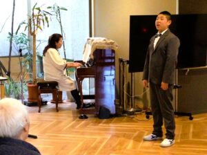 実は、ご指導にあたられる欅田真須子先生(神戸女学院大学 音楽学部講師。今回ピアノ演奏を担当)は、当施設のご入居者様のご家族という繋がりがございます。まさに「ご縁」が運んでくれた、奇跡のようなひとときでした。